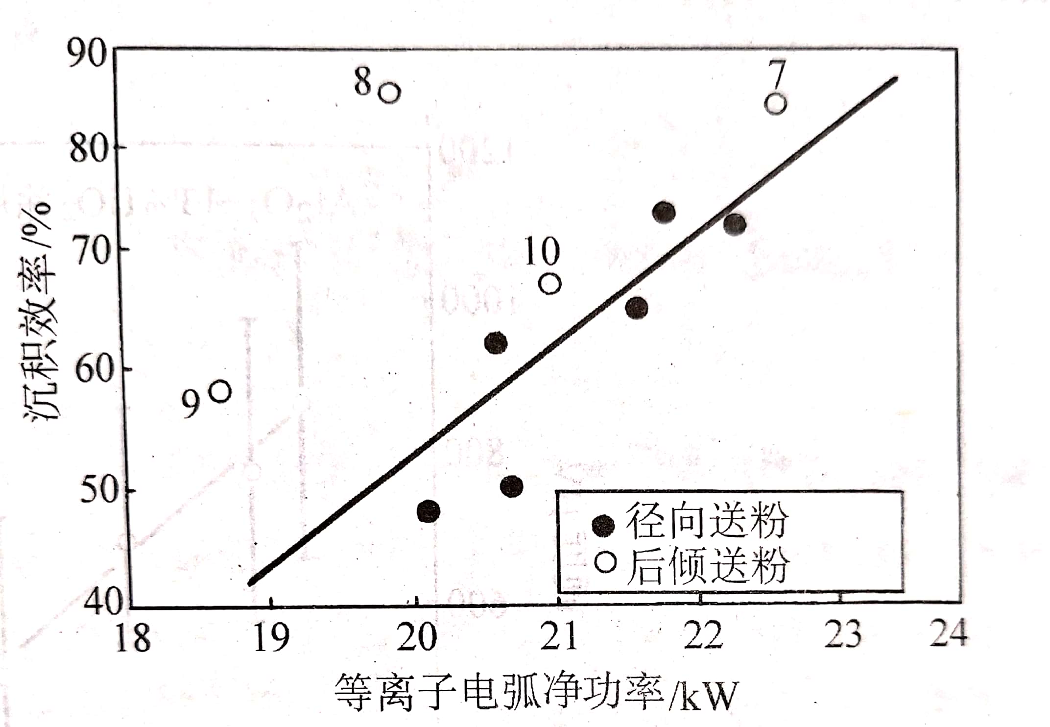 圖(2)氧化鋯涂層沉積效率隨著等離子電弧凈功率的變化