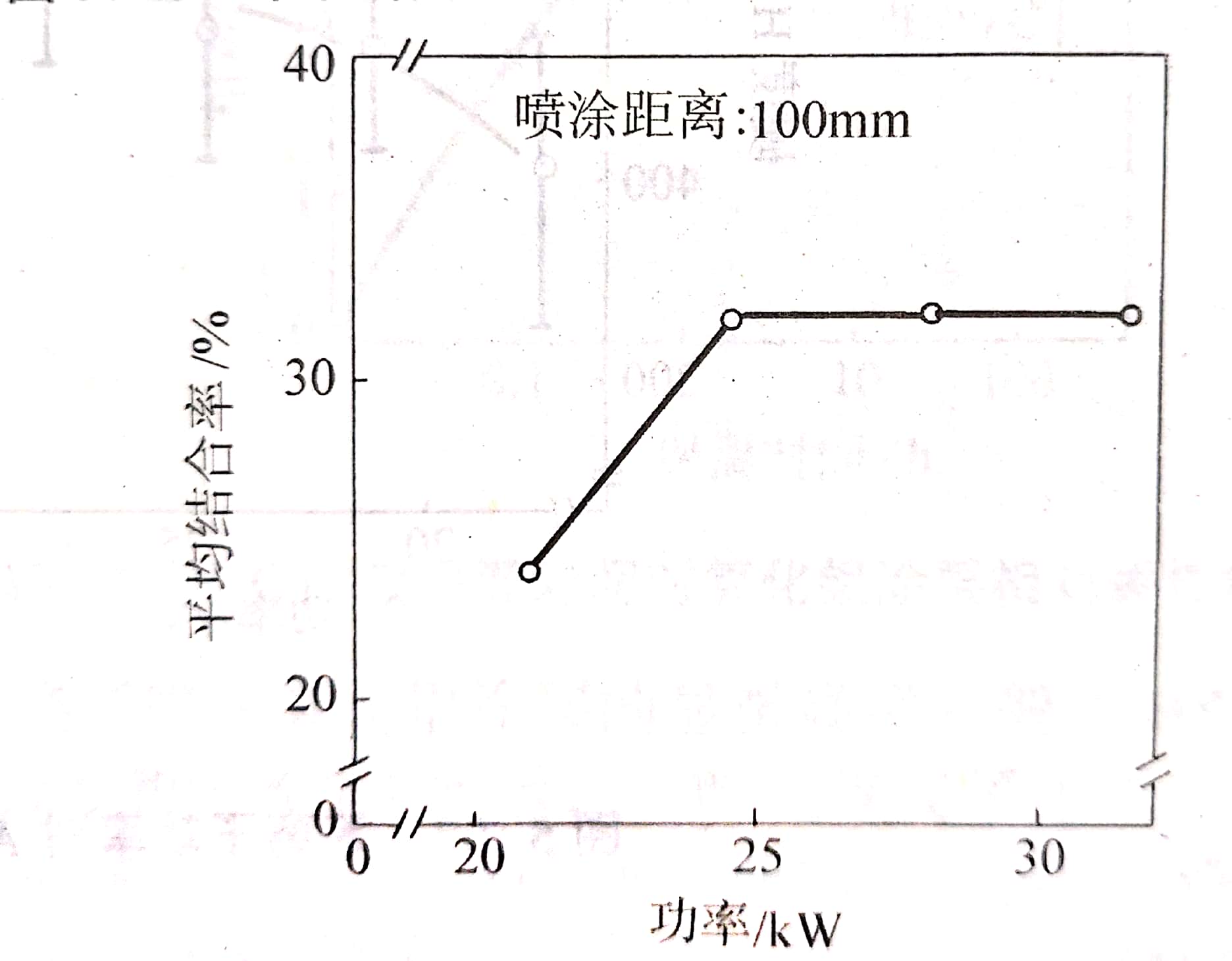 圖(4)等離子功率對氧化鋁涂層粒子間結(jié)合率的影響